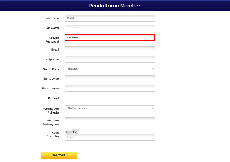 Silahkan masukan kode pada kolom tersebut sesuai yang pada kolom di atasnya dan setelah semuanya data anda terisi di dalam kolom, maka silahkan lanjutkan dengan klik "DAFTAR" Setelah sudah melakukan klik menu daftar pada gambar di atas, maka tunggu beberapa detik untuk memastikan apakah akun anda sudah terdaftar seperti contoh gambar berikut ini. LINK ALTERNATIF ONGTOTO adalah Bandar Togel Online Anak cabang dari Lxgroup Togel yang menyediakan permainan tebak angka, live game #000000.